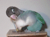 | Pucky, my most tame lovebird | Here with his girlfriend Sweetie, bluemasked. | He Sweet! I'd loved to be tickled by you! | Okay then... here you go. |